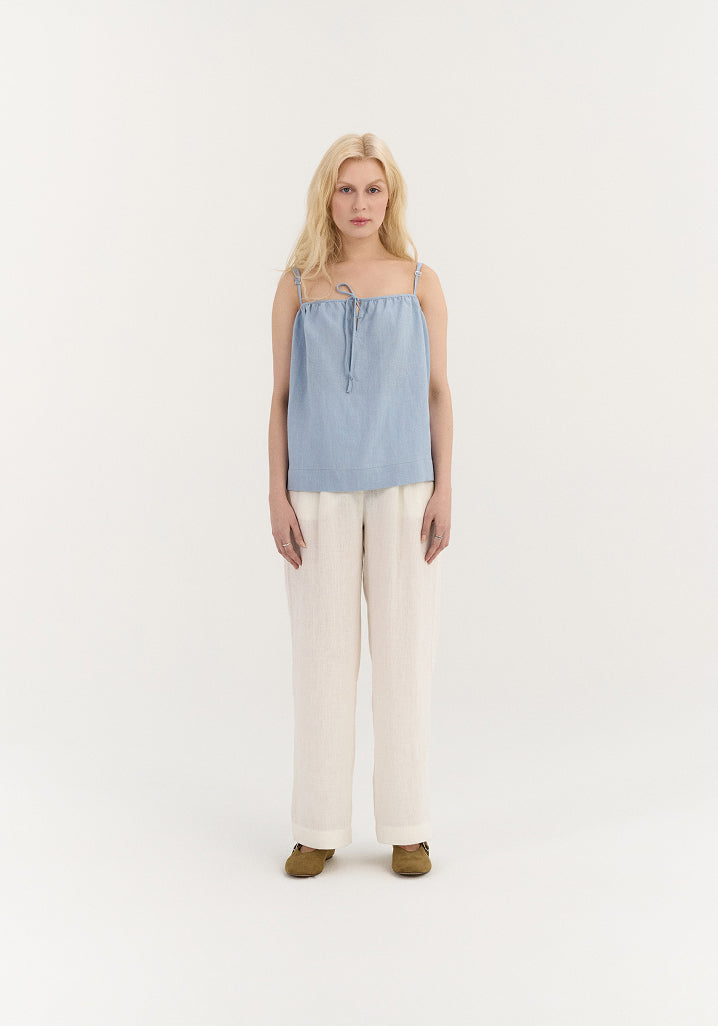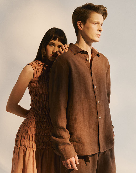 Diese Kollektion beginnt irgendwo Warmes. Im italienischen Licht, ungehetzten Tagen und den kleinen Details, die einen Ort wie Zuhause fühlen lassen. Zertifiziertes litauisches Leinen, gemacht um langsam getragen und lange behalten zu werden.